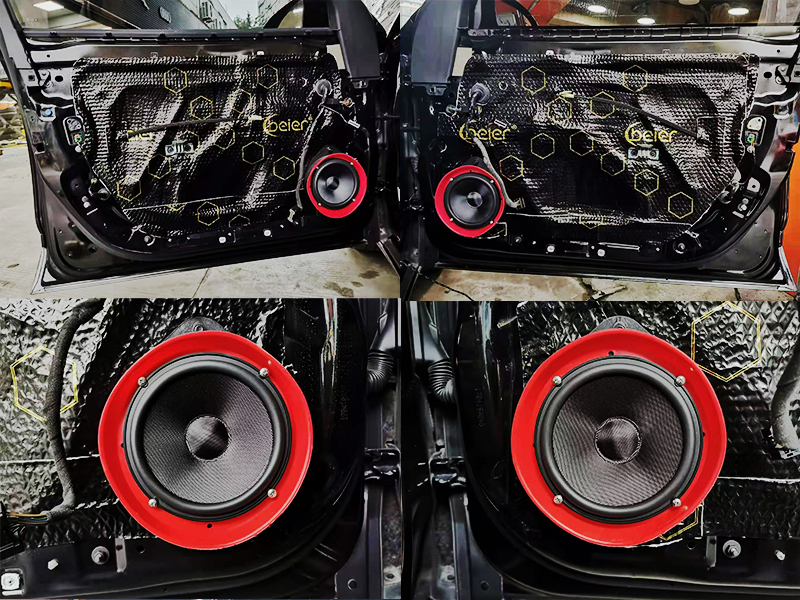 首先我们要先升级隔音。原车车门的铝板偏薄,这也是隔音不好的主要原因。还有就是声音的共振也会破坏音质。这里我们就要使用黑金刚的隔音棉来起到加厚铝板的效果。增强隔音效果和减少共振。