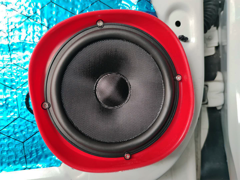 原车门板的铁单薄非常容易产生异响,影响音质效果。所以第一步必须标准的隔音——贝尔三层隔音