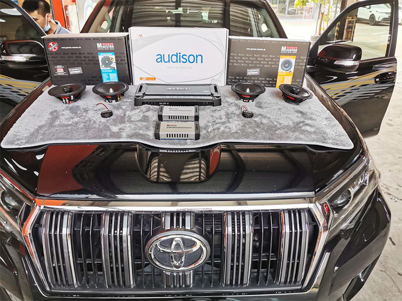 丰田霸道原车音响的喇叭是由纸盆加胶架组装而成,所以很多车主都会对原车出来的音效特别的不满意,车主经过对比和试听后决定升级全套德国曼斯特喇叭使用意大利欧迪臣功放增大其信号功率,提升音乐效果的力度感