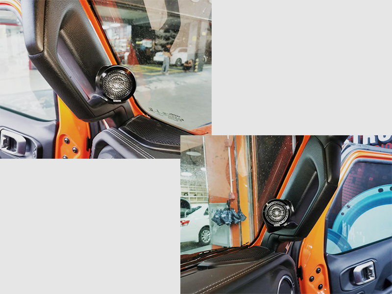 因为高音位是倒模加的,在前车的A柱上加了四个高音。倒模加装也是很不影响外观,也不会有所损耗